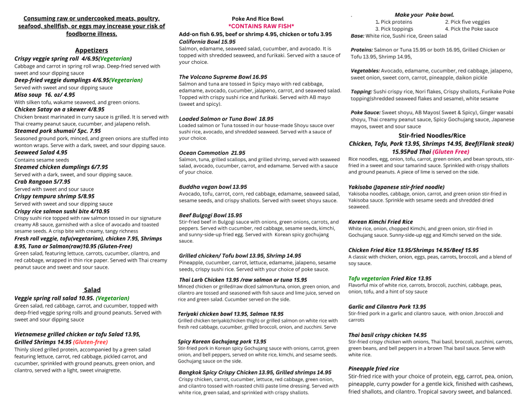 Salmon and tuna are tossed in Spicy mayo with red cabbage, edamame, avocado, cucumber, jalapeno, carrot, and seaweed salad. Topped with crispy sushi rice and furikaki. Served with AB mayo (sweet and spicy).